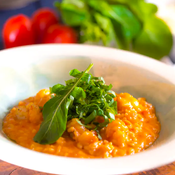 Arroz arbório de cozimento perfeito, ingredientes nobres e aquele toque de manteiga que derrete no paladar. Uma explosão de sabor em cada colher.